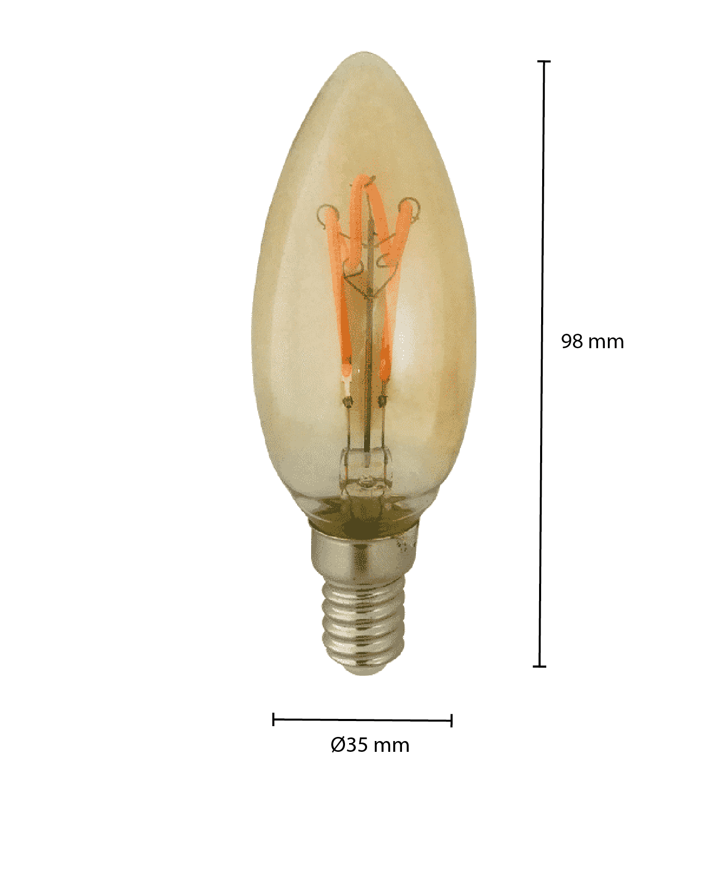 LED-Filament E14 Kerzenlampe - Dimmbar, Bernstein, 4W, 2200K MDRLED®