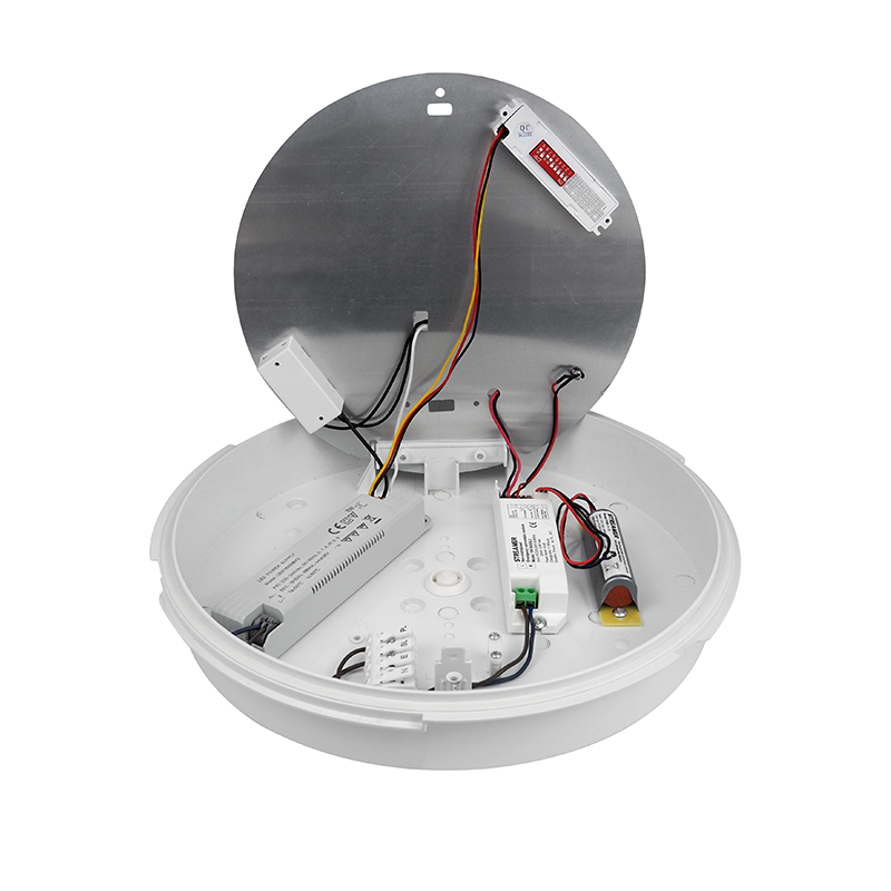 Die MDRLED® DECKENLEUCHTE NOTFALL lässt sich durch Abklemmen des Notakkus ganz einfach in eine Notbeleuchtung umwandeln. Die Autotestfunktion ermöglicht eine automatische regelmäßige Prüfung des Zustands von Batterie, Elektronik und Lichtquelle gemäß dem internationalen Protokoll IEC62034. Dadurch wird sichergestellt, dass die Lampe im Notfall immer betriebsbereit ist und somit Sicherheit und Zuverlässigkeit gewährleistet.