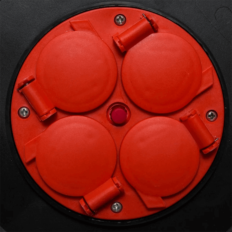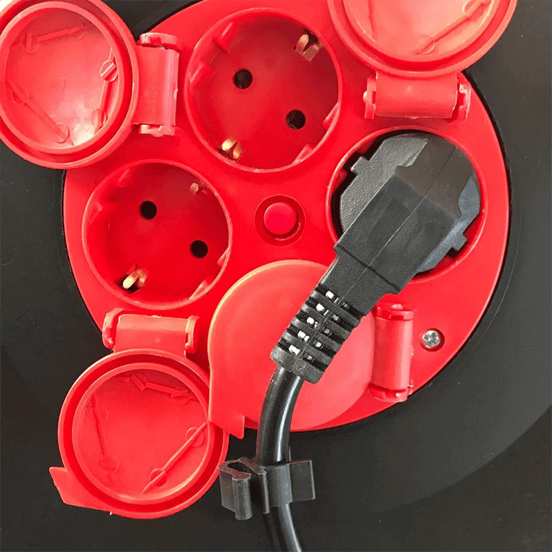 Staubdichter Anschluss: Die Kabeltrommel ist mit staubdichten Abdeckungen für die Steckdosen ausgestattet, die Staubansammlungen verhindern. Dadurch ist die Rolle ideal für Werkstätten und Industrieumgebungen, in denen Staub oft eine Herausforderung darstellt.