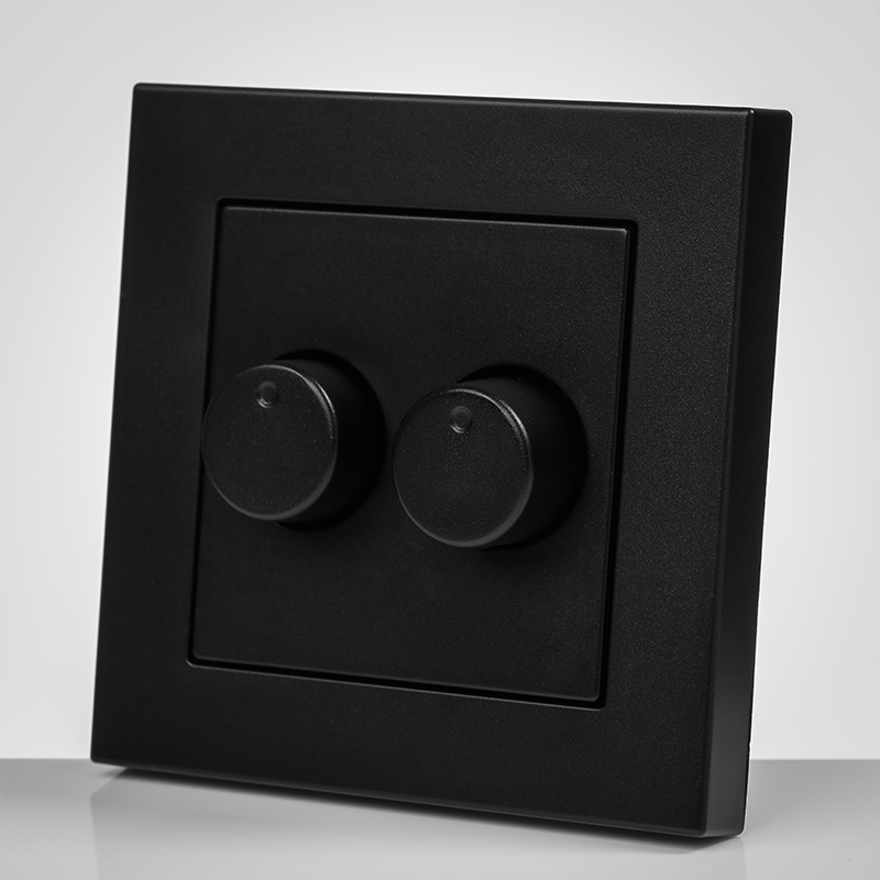 Matowa czarna płytka osłonowa została specjalnie zaprojektowana do ściemniacza LED Duo 2×0,3-200 W firmy ION INDUSTRIES. Ten przełącznik włącz/wyłącz jest wielofunkcyjny i pasuje do wielu ściemniaczy z podwójnym podłączeniem. Niedostępne dla ściemniaczy Busch-Jaeger.