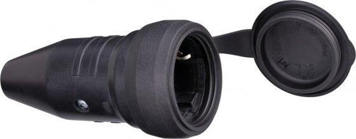 De MDRLED® Contrastekker Randaarde, Rubber, 10/16 A, Zwart afsluitbaar is een waterdichte stroomaansluiting die geschikt is voor verschillende toepassingen. Met een belastbaarheid van 10/16 A en een randaarde is deze contrastekker ideaal voor het aansluiten van apparatuur zoals lampen, stofzuigers en keukenapparatuur.