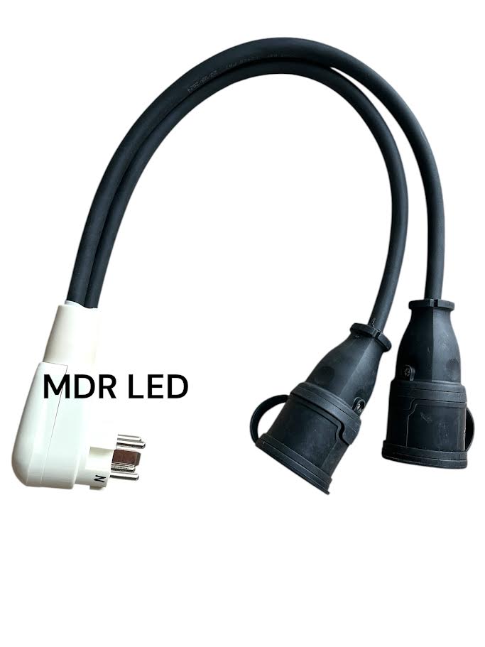 Deze hoogwaardige 25A Perilex verloopstekker van MDR LED® is speciaal ontworpen om twee 230V aansluitingen te creëren via een slanke verdeling over twee fasen . Zo wordt de belasting beter verdeeld en voorkom je overbelasting van je elektrische installatie – cruciaal in omgevingen met zware apparatuur zoals horecakeukens, foodtrucks, bouwplaatsen en industriële toepassingen .